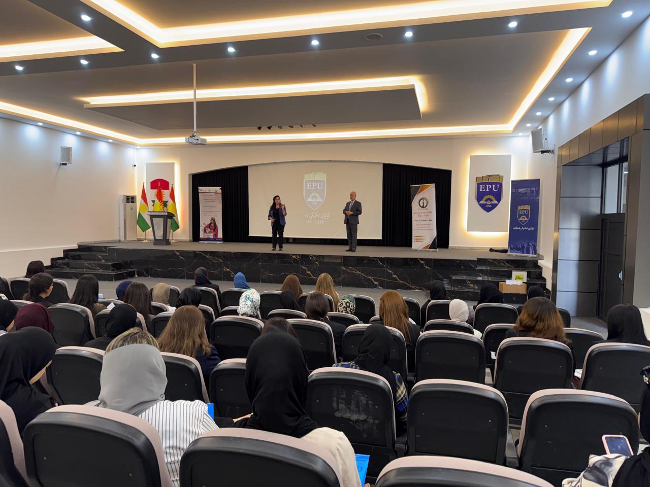 A seminar was conducted for 115 university students and professors at the Polytechnic University in Shaqlawa district as part of the project “Encouraging Women’s Participation in Elections.”