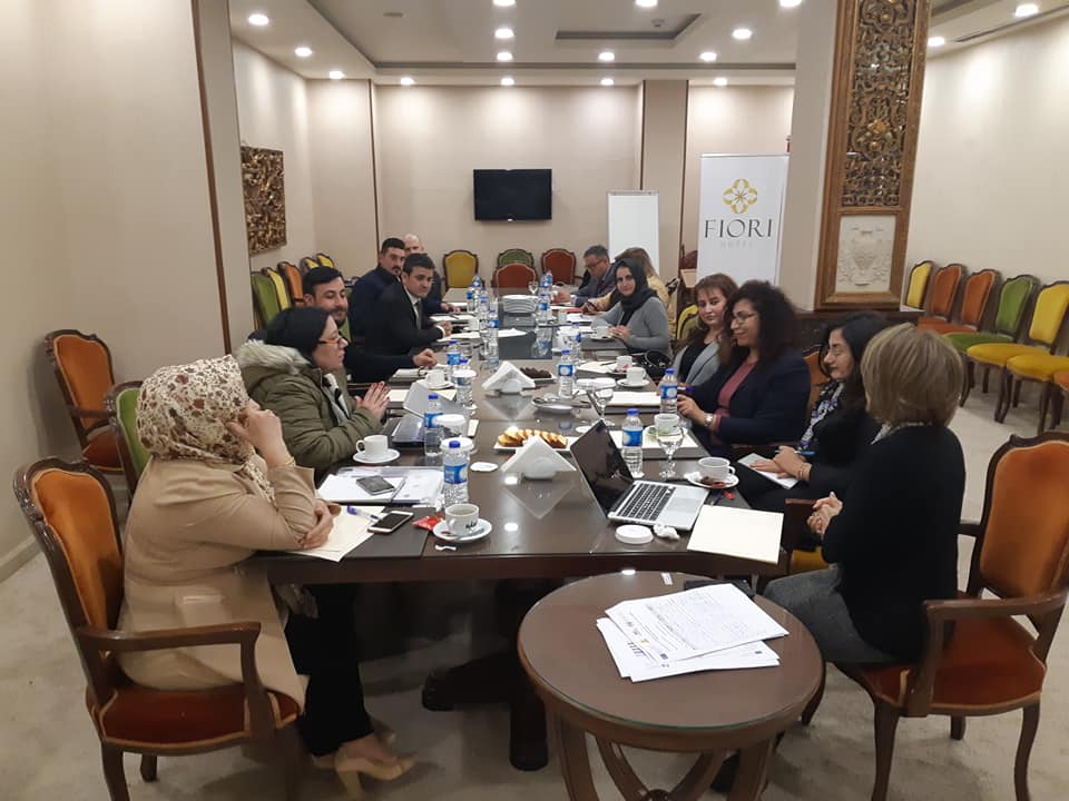 A meeting with civil society organizations on the presentation of project proposals, within the framework of the project to enhance access to protection, participation and services for refugee and displaced women and host communities with funding from the European Union and the Euro-Mediterranean Women's Initiative. This meeting was held in cooperation with Women Empowerment and Baghdad Women's Association.