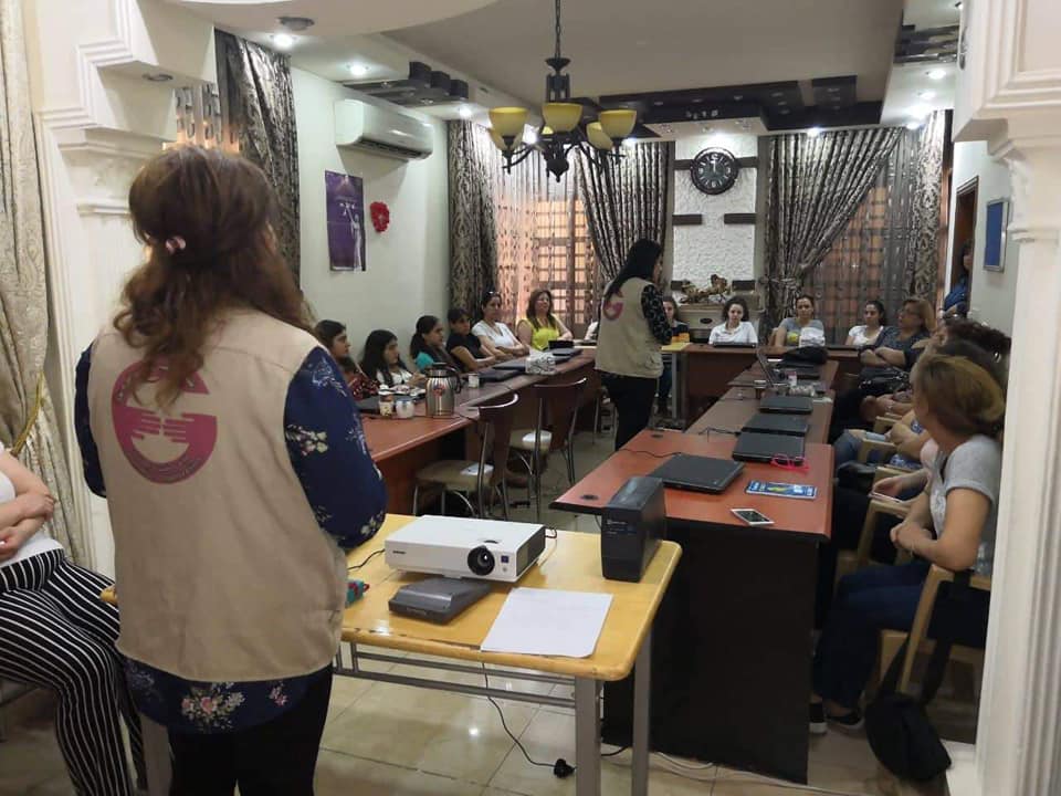 At the center of our organization in Ankawa. A seminar was held for 23 women's displaced and refugees. The lecture was presented by the social researcher, on combating social violence and ethnic diversity, and resolution 1325 of the UN Security Council. Within the framework of the project to enhance access to protection, participation, and services for refugee, displaced and host communities. Funded by the European Union (MADAD fund) and in partnership with the Euro-Mediterranean Women's Initiative (EFI). This meeting was held in cooperation with Women Empowerment Organization and Baghdad Women's Association.