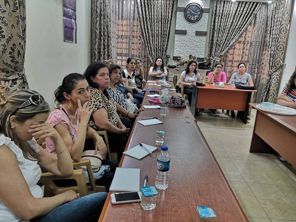 Opening English course for Displaced and refugees women of Syrian Christians at our organization center in Ankawa city, 26 refugees and displaced Syrian women have participated in the course. Within the framework of the project to enhance access to protection, participation, and services for refugee, displaced and host communities. Funded by the European Union (MADAD fund) and in partnership with the Euro-Mediterranean Women's Initiative (EFI). This meeting was held in cooperation with Women Empowerment Organization and Baghdad Women's Association.