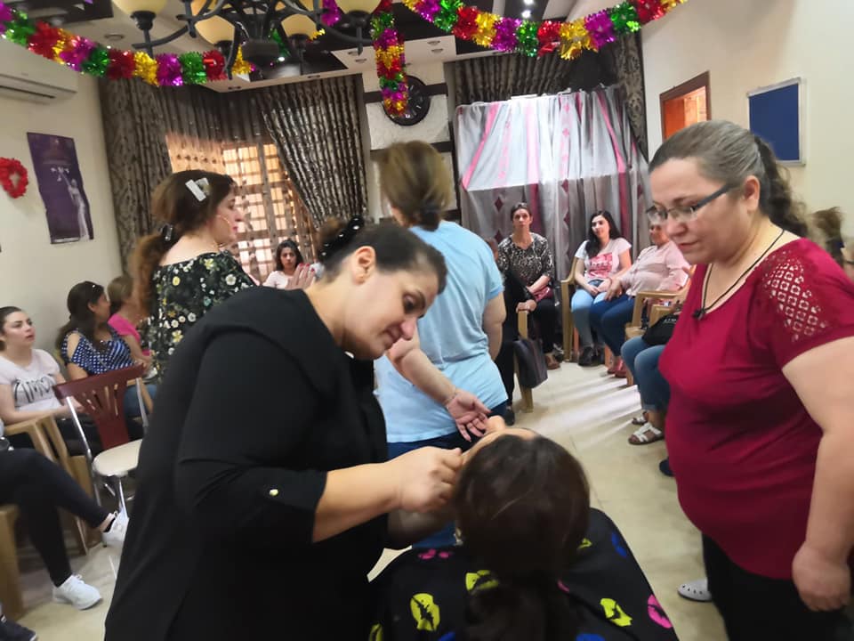 Opening a hairdressing course for 34 Syrian women's displaced and refugees at our organization center in Ankawa city. The duration of the course was ten days for the period (7 to 17/7/2019), in which participants learned the basics of hair care and skin, and how to cut and dye hair. Within the framework of the project to enhance access to protection, participation, and services for refugee, displaced and host communities. Funded by the European Union (MADAD fund) and in partnership with the Euro-Mediterranean Women's Initiative (EFI). This meeting was held in cooperation with Women Empowerment Organization and Baghdad Women's Association.