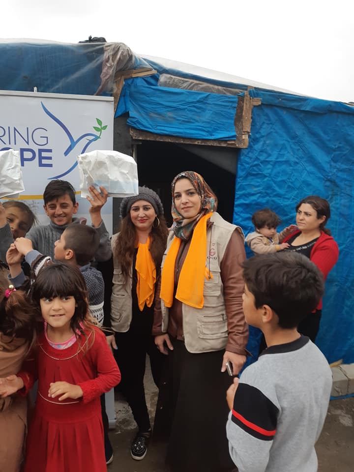 Visit Yazidi's camp. In this visit, were distributed gifts and clothes to 49 families and children, these families, and children have lived in a poor living condition. This visit was in cooperation with the Bring hope organization.