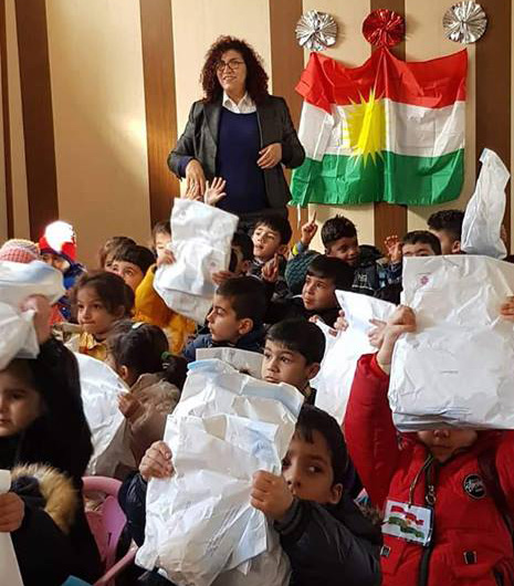 Distributing the gifts to children of the Sarmaidan Kindergarten in Shaqlawa city, This activity was in cooperation with the Bring hope Organization.