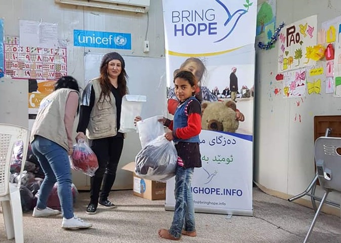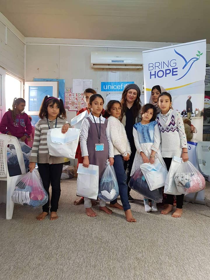 Distributing the gifts to 200 Refugee children in Baharka Camp. in cooperation with the Bring hope Organization.
