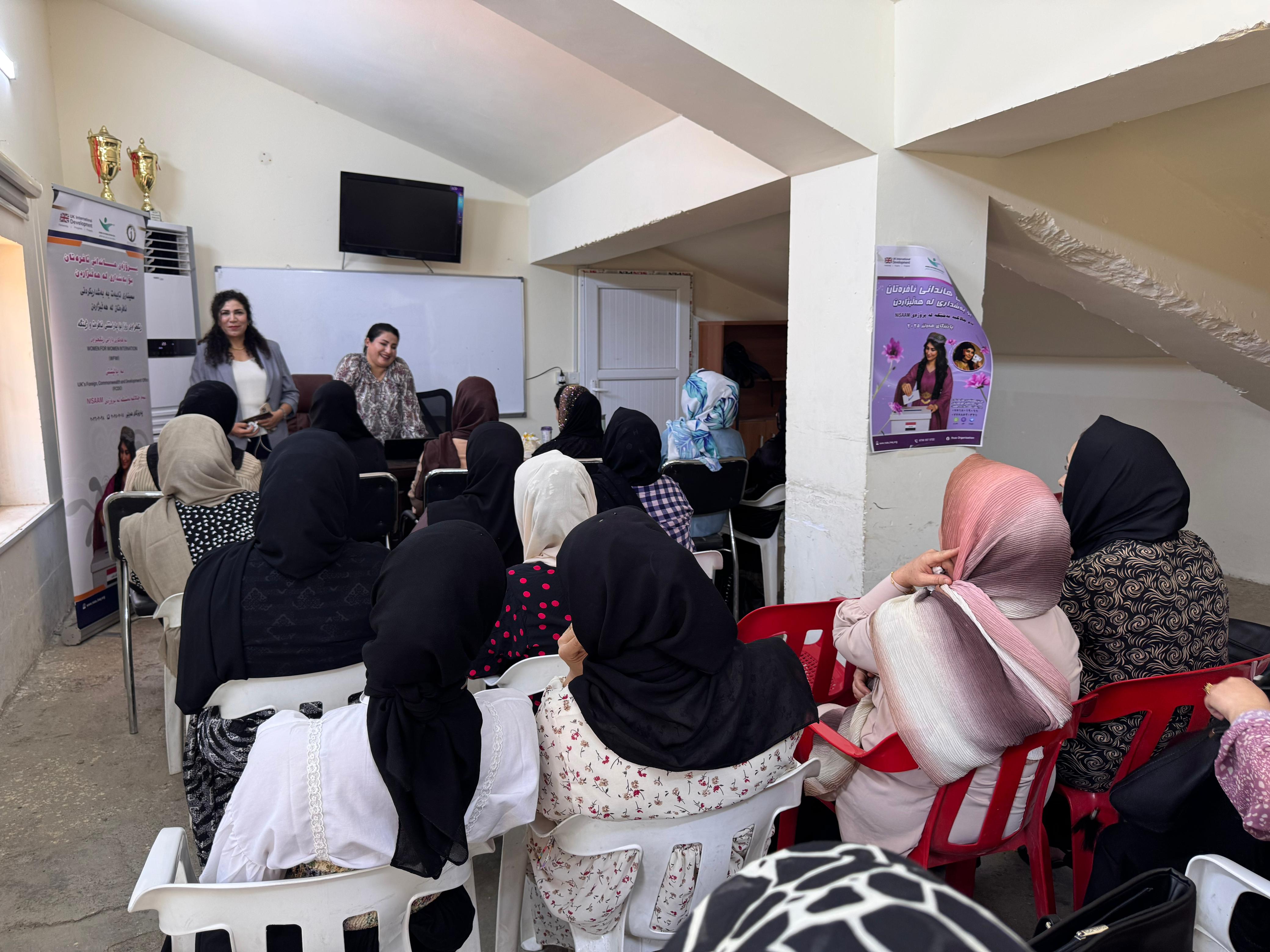 On 21/8/2025, as part of our organization’s activities within the “Women’s Participation in Elections” project, implemented in cooperation with Women for Women International and supported by the UK Foreign, Commonwealth & Development Office (FCDO) — as part of the NISAAM project — we conducted a special awareness seminar for women in Rwanduz District.