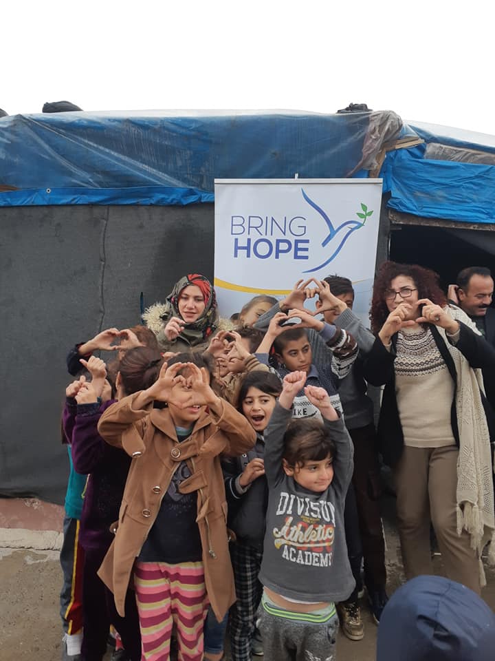 Visit Yazidi's camp. In this visit, were distributed gifts and clothes to 49 families and children, these families, and children have lived in a poor living condition. This visit was in cooperation with the Bring hope organization.