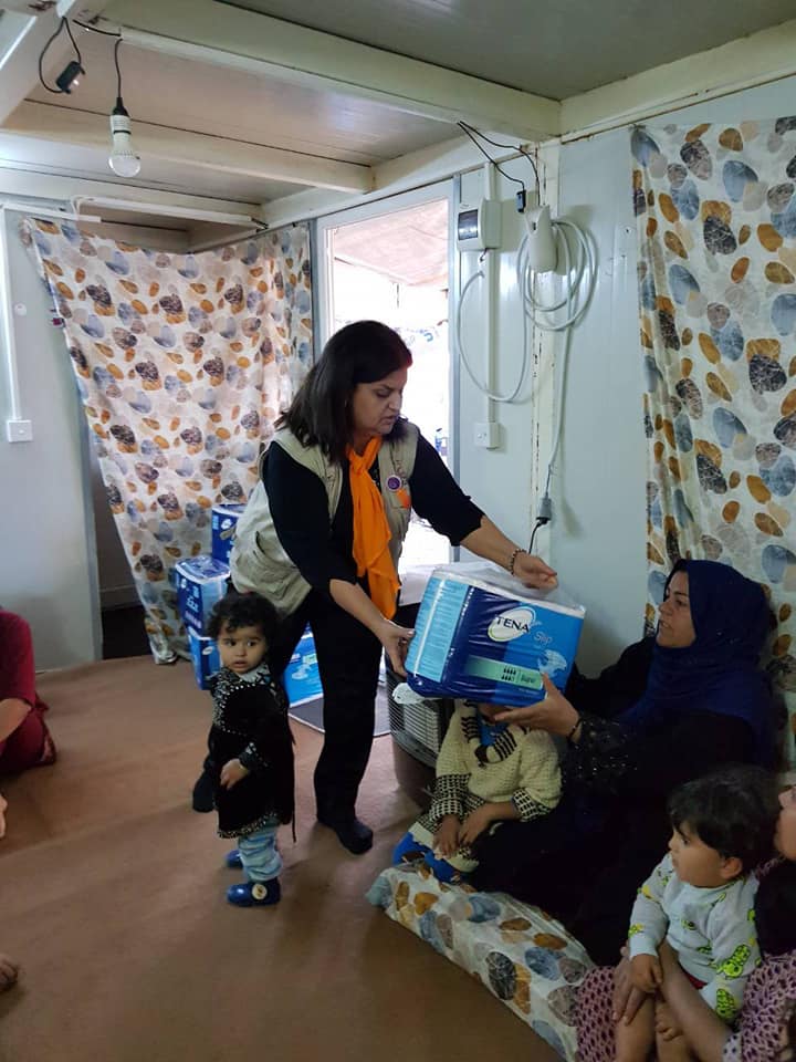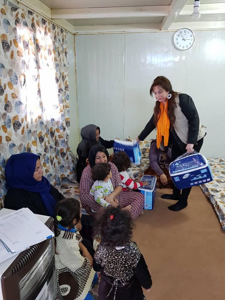 Distributing the children's clothing to displaced in Baharka Camp.