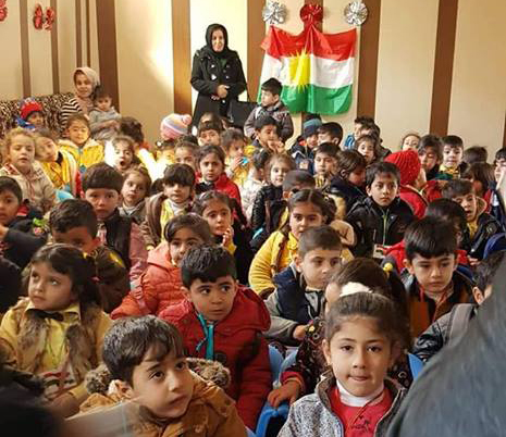 Distributing the gifts to children of the Sarmaidan Kindergarten in Shaqlawa city, This activity was in cooperation with the Bring hope Organization.