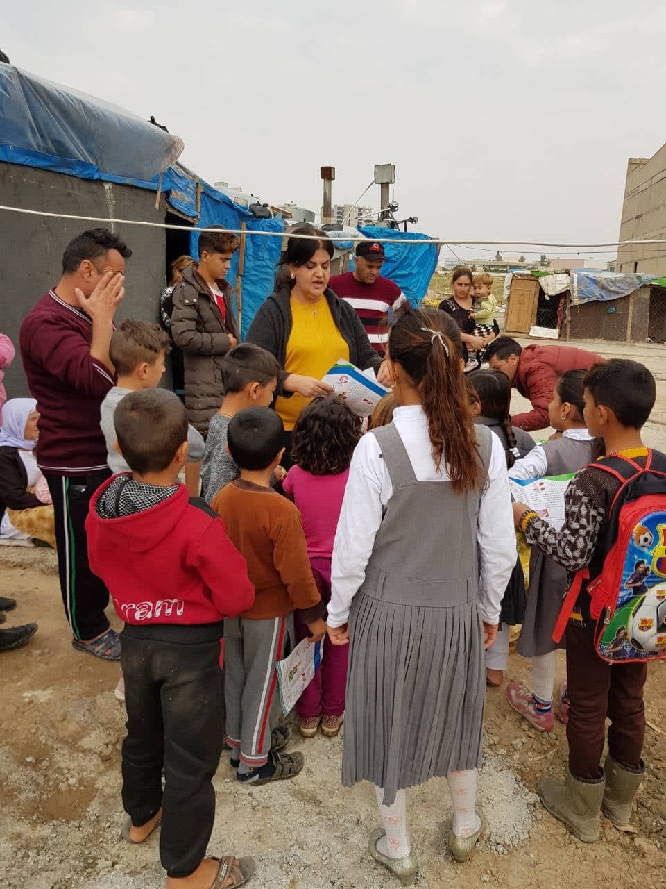 دابەشكردنی پێداویستی خێزانی بەسەر ٢٠ ئاوارەی یەزیدی ،کە لە نزیك هۆتێلی دێڤان نیشتەجێ ببوون. ئەم هاوكاریانە بە هەماهەنگی لەگەڵ رێکخراوی Bringhope بەرێوەچوو .